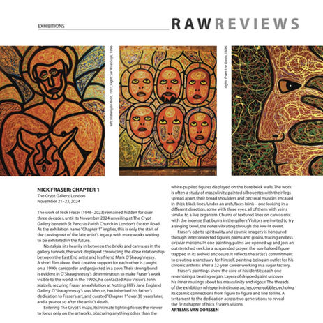 Fraser's formidable and seldom-seen body of work is now coming to light through the dedicated efforts of his lifelong friend and advocate, Mark O'Shaughnessy. As Fraser's story unfolds, his art stands as a powerful testament to the enduring legacy and transformative power of outsider art.